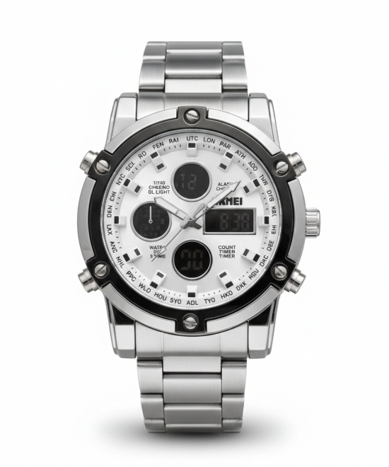 SKMEI Silver Luxury Analog Watch for Men – Stainless Steel Finish, Classic Dial