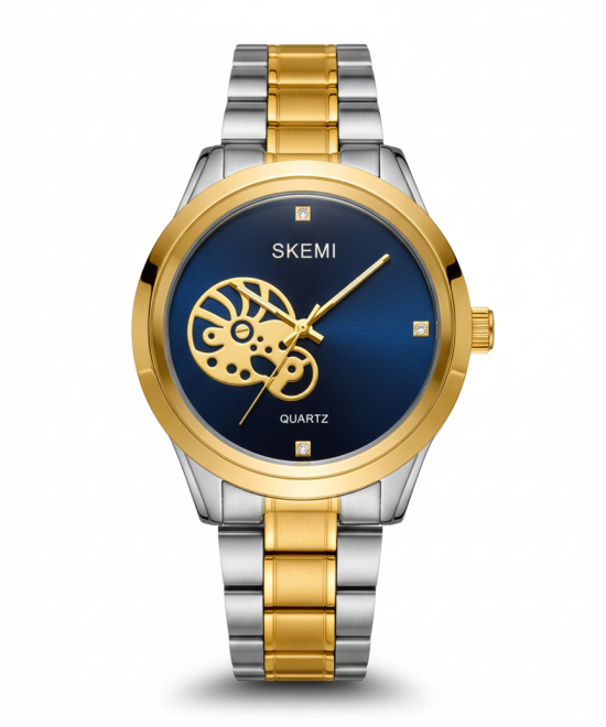 SKMEI Two-Tone Gold & Silver Watch with Blue Dial – Stylish Men’s Timepiece