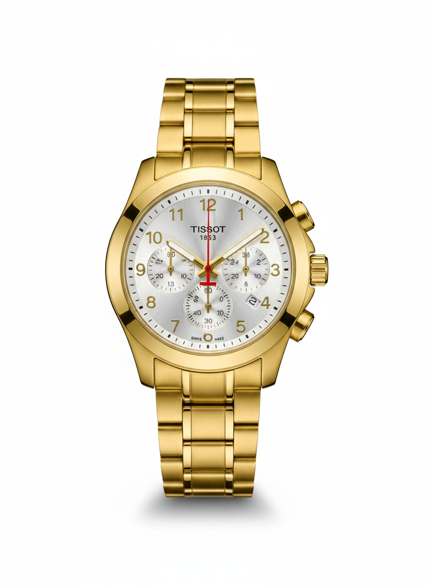 The premium gold-tone bracelet ensures comfort and a secure fit, while the sunray dial reflects light beautifully, adding a dynamic and polished touch. Every detail exemplifies Tissot’s commitment to exceptional craftsmanship and precision.