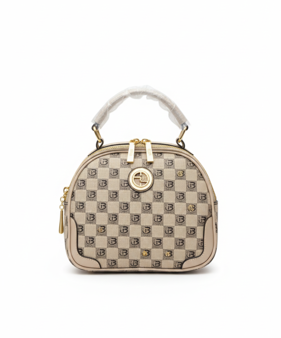 BENBO BEAR Beige Handbag with Green & Navy Blue Accents – Stylish Women’s Shoulder Bag